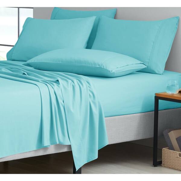 2000TC 6-Piece Aqua Solid Cotton Blend Queen Sheet Set