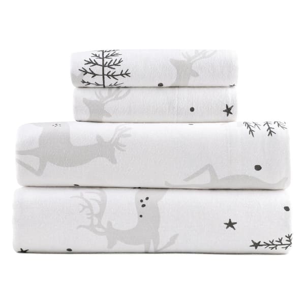 4-Piece Christmas Deer 100% Turkish Cotton Flannel Cal King Sheet Set