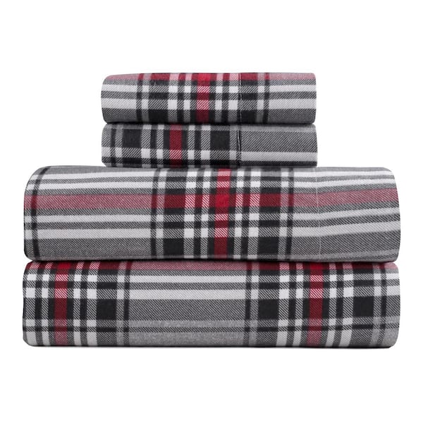 4-Piece Crimson Check 100% Turkish Cotton Flannel Queen Sheet Set