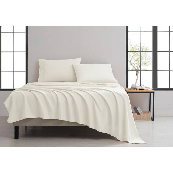 Microfiber 4-Piece Ivory Solid Twin Sheet Set