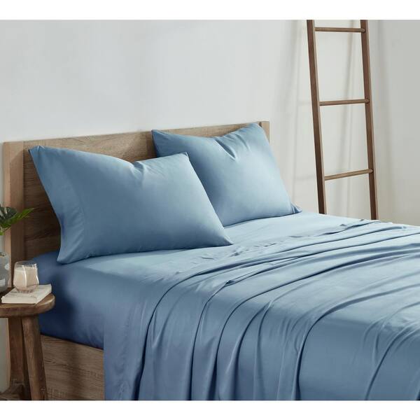 Solid 300TC 4-Piece Denim Bamboo Queen Sheet Set