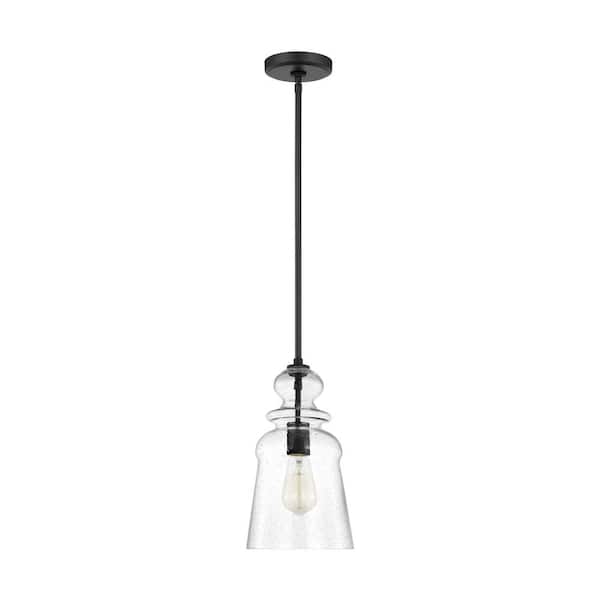 Kea 1-Light Midnight Black Hanging Pendant Light with Clear Seeded Glass Shade