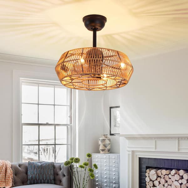 19 in. Rattan Indoor Matte Black Ceiling Fan with Lights, 6-Speed Remote Control and DC Motor for Small Bedroom