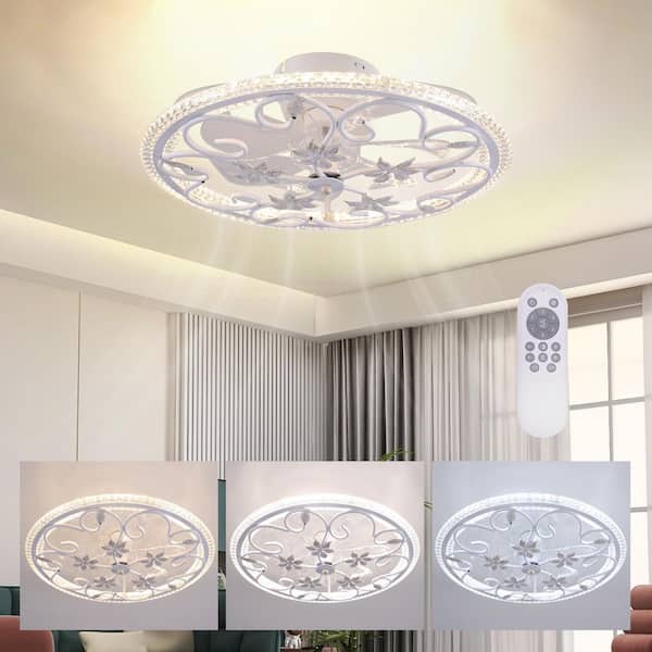 20 in. Flush Mount Caged Indoor Matte White Ceiling Fan with Dimmer LED Lights and Reversible DC Motor for Small Bedroom