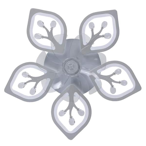 22 in. Leaf Shape Flush Mount Indoor White Ceiling Fan with LED Lights, Remote Control and DC Motor for Small Bedroom
