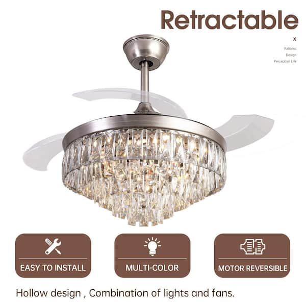 42 in. Indoor Silver Crystal Ceiling Fan with Dimmable LED Light and Remote Control for Bedroom,Living Room,Dining Room