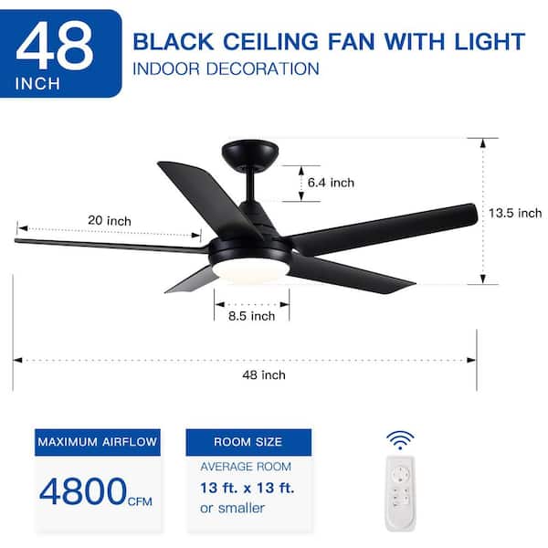 48 in. Indoor Black Ceiling Fan with Dimmable LED Light and Remote Control for Bedroom, Living Room, Dining Room