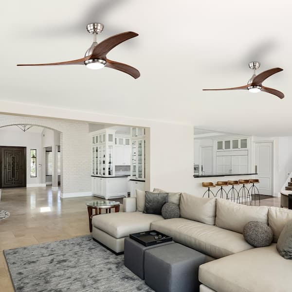 52 in. Sand Nickel Indoor Ceiling Fan with LED Light, Wood Blade, Remote Control and Reversible DC Motor for Bedroom