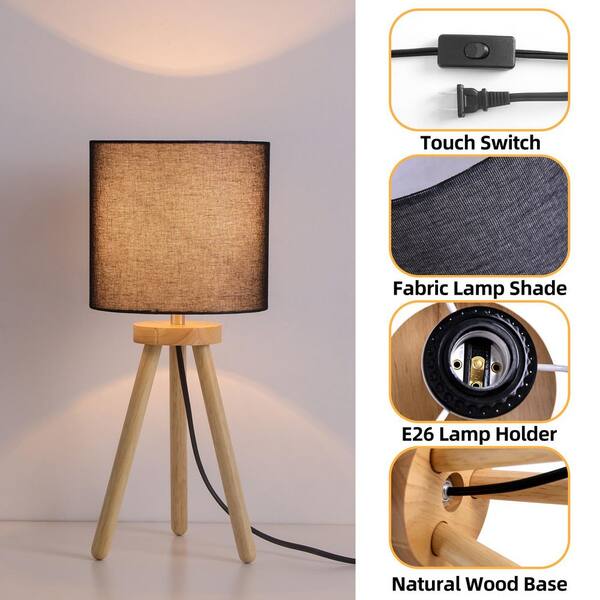 Daisy 18 in. Natural Tripod Table Lamp with Black Round Shade and E26 Bulb Base