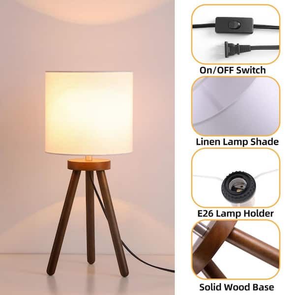 Daisy 18 in. Walnut Tripod Table Lamp with White Round Shade and E26 Bulb Base