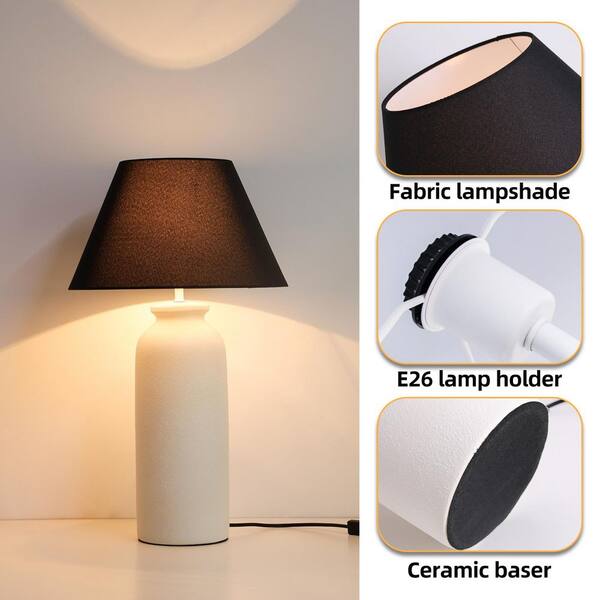 Finn 28 in. Ceramic White Table Lamp with Black Cone Shade and E26 Bulb Base