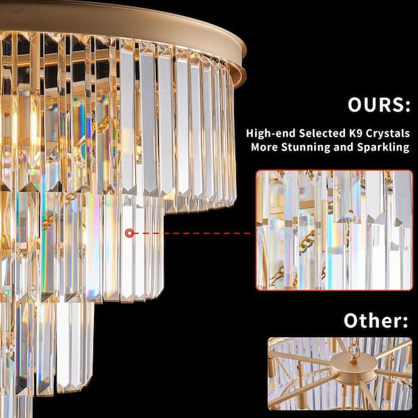 Foehn 12-Lights Modern Gold Crystal Chandelier with E12 Socket