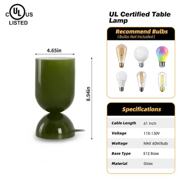 Maya 9 in. Green Glass Table Lamp for Bedroom with E12 Bulb Base