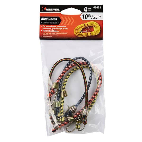 10 in. Mini Multi-Colored Bungee Cords with Hooks (4 Pack)