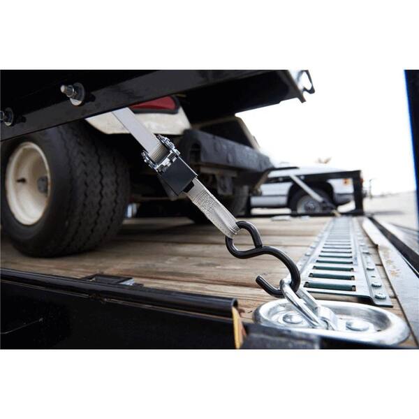 • Ratchet tie-down designed to tighten and secure cargo
