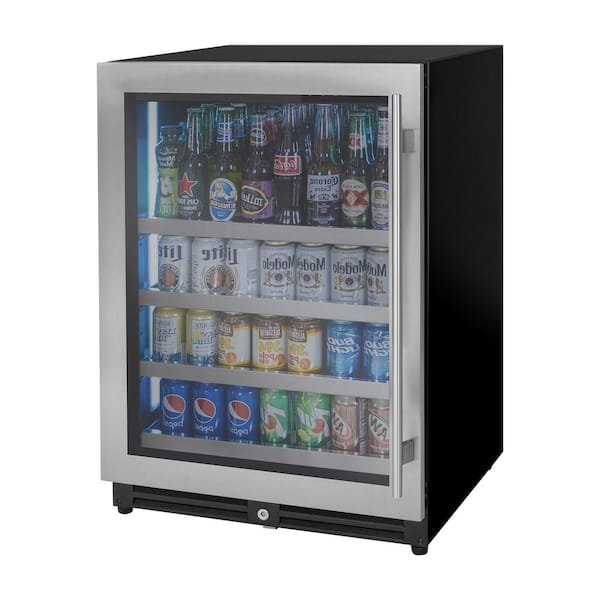 24 in. Single Zone 154-Cans Beverage Cooler in Stainless Steel with Left Hinge