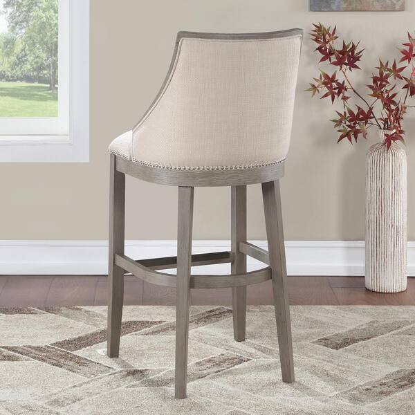 Keller 42.5 in. Grey High Back Wood Bar Stool with Fabric Seat