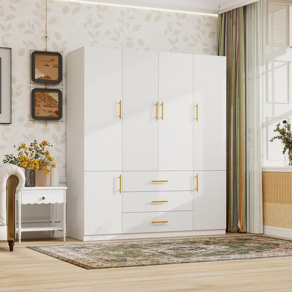 White Wooden 74 in. H x 63 in.W 20.3 in.D Bedroom Wardrobe Armoire Closet with 3-Drawers and 6-Doors