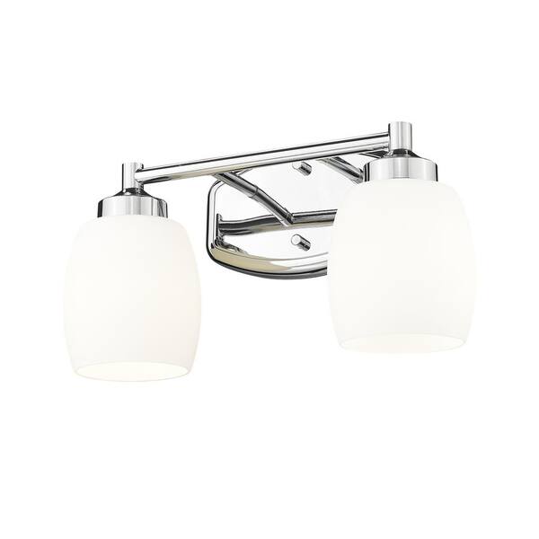 Kendrick 14.5 in. 2-Light Chrome Vanity-Light with Matte Opal Glass Shade