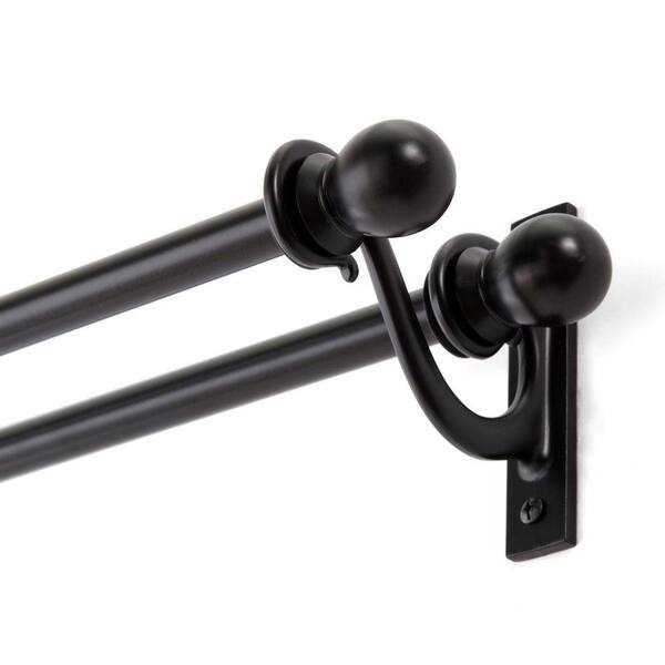 90 in. - 130 in. Telescoping 5/8 in. Double Curtain Rod Kit in Black with Ball Finial