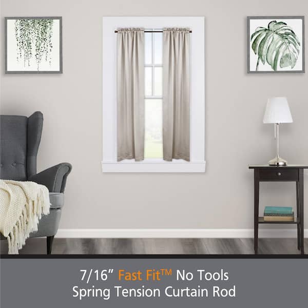 Fast Fit No Tools 18 in. - 28 in. Adjustable Spring Tension Curtain Rod, 7/16 in. Dia. in Chocolate Brown, Set of 2