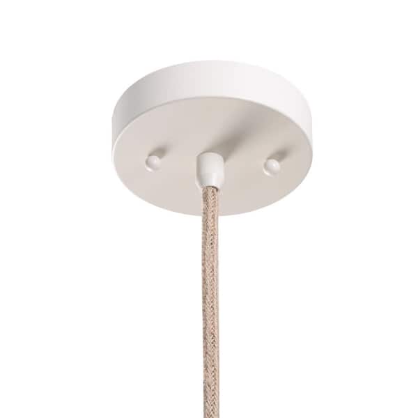 Maverick 1-Light White Shaded Pendant Light with Natural Rattan Bamboo Shade