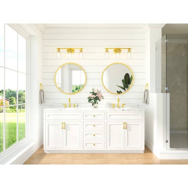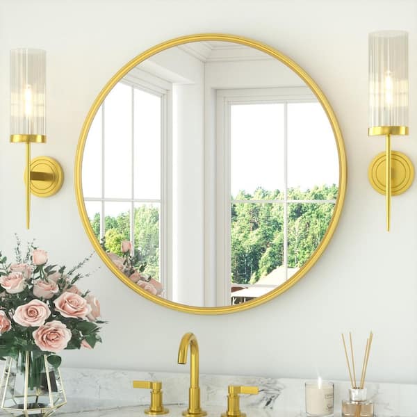 28 in. W x 28 in. H Round Metal Brass Gold Framed Modern Wall Mounted Bathroom Vanity Mirror Wall Mirror