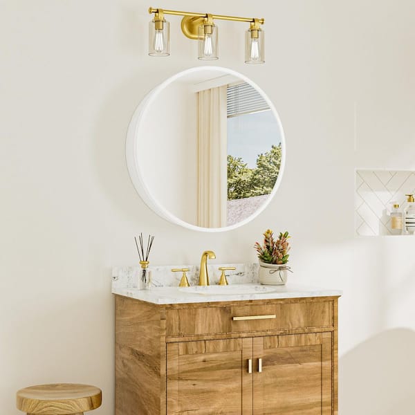 30 in. W x 30 in. H Round White Metal Framed Surface Mount Medicine Cabinet with Mirror