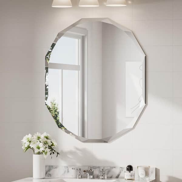 30 in. W x 36 in. H Oval Beveled Frameless Wall Mount Bathroom Vanity Mirror Decorative Wall Accent Mirror