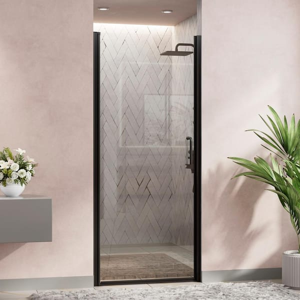 32 in. W x 72 in. H Pivot Swing Frameless Shower Door in Black with Clear Glass and Handle