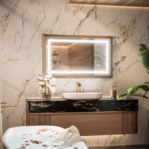 40 in. W. x 24 in. H Rectangular Aluminum Framed with 3-Colors Dimmable LED Wall Mount Bathroom Vanity Mirror in Gold