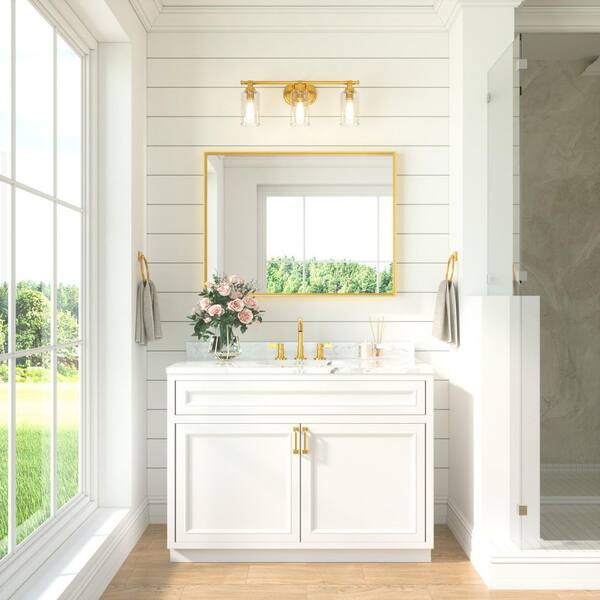 40 in. W x 30 in. H Rectangle Aluminum Framed Wall Bathroom Vanity Mirror in Gold