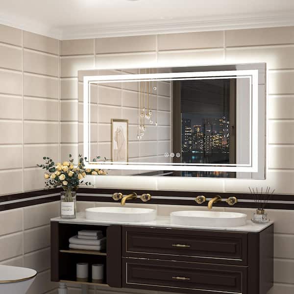 55 in. W x 30 in. H Rectangular Frameless LED Light Anti-Fog Wall Bathroom Vanity Mirror with Frontlit and Backlit