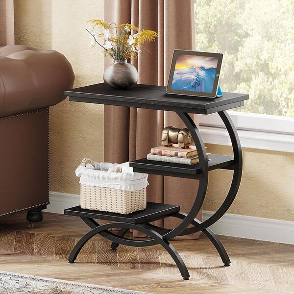 Kerlin 23.6 in. Black Wood and Metal C-Shaped End Table, 3-Tier Side Table with Shelves, Side Table for Living Room