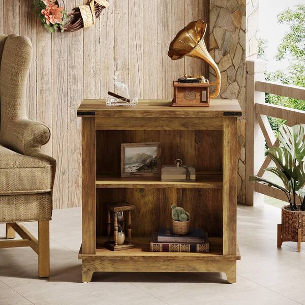 Kerlin 24 in. Rustic Brown Rectangle Wood End Table with 3-Tier Storage Shelf, X-Design Side Table Tall Nightstand