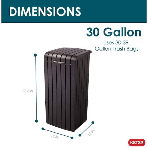 30 Gal. Brown Copenhagen Wood Style Plastic Trash Can