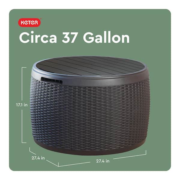 Circa 37 Gal. Deck Box Compact Durable Resin Plastic Grey Outdoor Storage for Patio Lawn and Garden