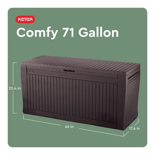 Comfy 71 Gal. Resin Durable Plastic Wood Look All Weather Outdoor Storage Deck Box, Brown
