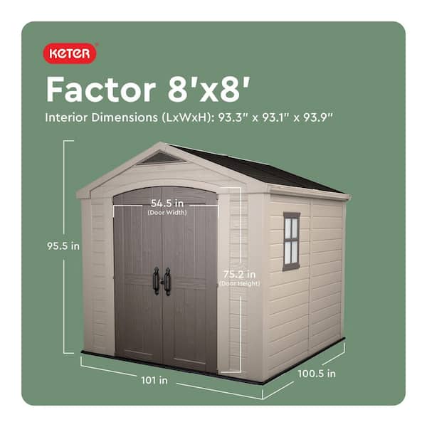Factor 8 ft. W x 8 ft. D Large Outdoor Durable Resin Plastic Storage Shed with Double Doors, Taupe Brown (70.49 sq. ft.)