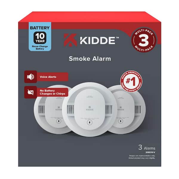 10-Year Battery Powered Smoke Detector with Photoelectric Sensor and Voice Alerts (3-Pack) 21033067