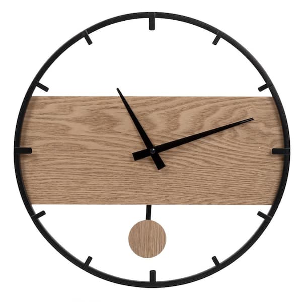 KIERA GRACE Metal and Wood Wall Clock – 14 in. Pendulm Black