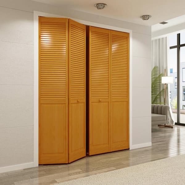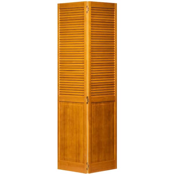 30 in. x 80 in. Traditional Louver Panel Golden Oak Solid Core Wood Bi-Fold Door
