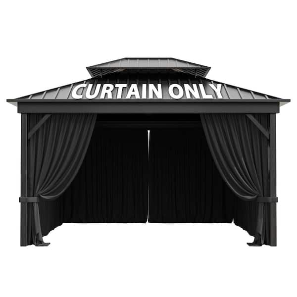 12 ft. x 12 ft. Universal Outdoor Privacy Curtains, Gazebo Replacement with Zipper Black (4-Side Curtain Only)