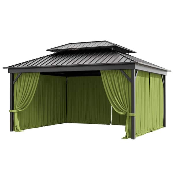 12 ft. x 14 ft. Universal Outdoor Privacy Curtains, Gazebo Replacement with Zipper Grass Green (4-Side Curtain Only)
