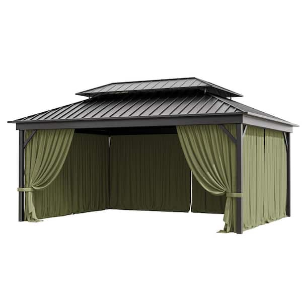 12 ft. x 16 ft. Universal Outdoor Privacy Curtains, Gazebo Replacement with Zipper Light Green (4-Side Curtain Only)