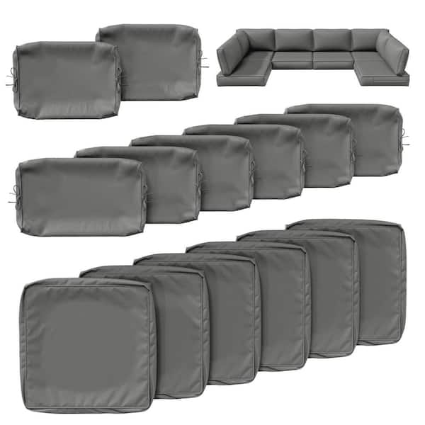 14-Piece Patio Cushion Covers Replacement with Zipper for Sectional Sofa Set, Slipcovers for Outdoor Cushions Light Grey