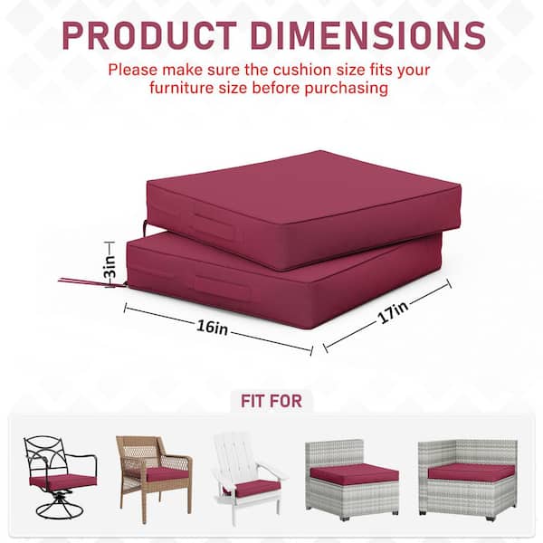17 in. x 16 in. x 3 in. (2-Pack) Square Outdoor Patio Seating Repacement Lounge Chair Dining Seat Cushion Fuchsia Red