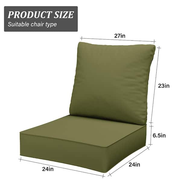 24 in. x 24 in. x 6.5 in. Outdoor Repacement Deep Seating Lounge Chair Cushion with Backrest Light Green