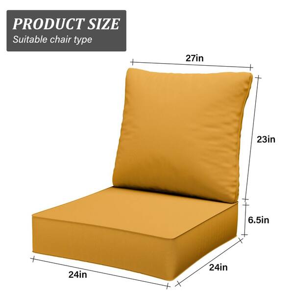 24 in. x 24 in. x 6.5 in. Outdoor Repacement Deep Seating Lounge Chair Cushion with Backrest Yellow