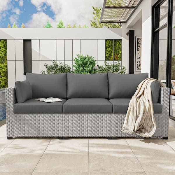 25.6 in. x 23.6 in. x 4 in. (8-Piece) Deep Seating Outdoor Lounge Cushion with Lumber Pillow Cushion Light Grey